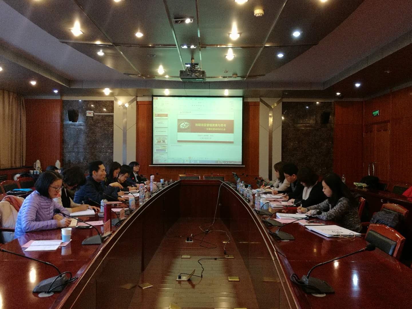 上海中医药大学科学技术处赵咏芳处长做了题为“科研项目管理要素与思考”报告,详细探讨了科研管理的望闻问切之道。上海中医药大学附属曙光医院科技处顾翠峰处长介绍了曙光医院科研管理系统,为其它高校的科研信息化工作提供一些可借鉴的经验。南京中医药大学科学技术与产业处尹刚副处长也介绍了所在高校的多层次科技服务支撑体系,以及在国家自然基金申报、论文、奖励等方面的激励措施。广州中医药大学科技处蔡晓燕副处长则着重介绍了广州中医药大学科技方面的创新工作,亮点诸多。韩振蕴处长以“科技创新驱动发展”为主题做了相关报告,并从科技人员与团队的管理、项目管理、成果转化管理、深化体制机制改革四个方面各提出若干问题。比如怎样调动科研人员积极性?如何提升国自然申报与中标率?如何提高成果转化意识?如何优化科研管理的流程?如何做好信息化建设?科技、财务、资产如何联动?等等。四所高校围绕这些共同关心的问题进行了热烈的讨论,将彼此的经验也做了充分的交流和探讨。