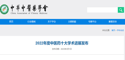 近日,由中华中医药学会主办的2022年度中医药十大学术进展发布会在京召开。遴选工作坚持“四个面向”,破除“四唯”,突出解决临床问题、回答科学问题、引领行业发展,体现探索性与前瞻性、创新性与突破性,聚焦中医药基础研究和应用基础研究领域取得的新规律、新发现、新方法、新产品、新理论。